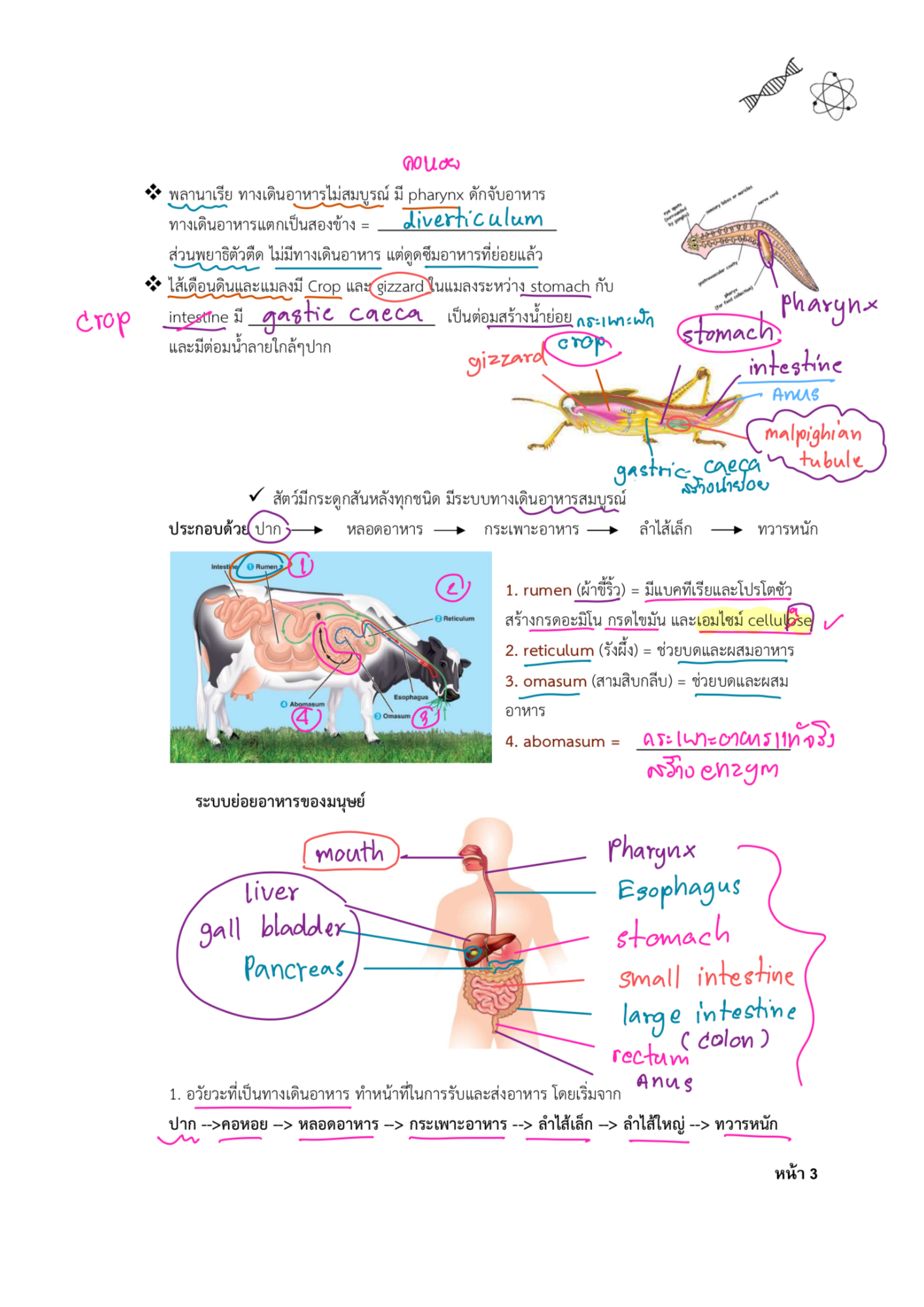 • ระบบย่อยอาหาร